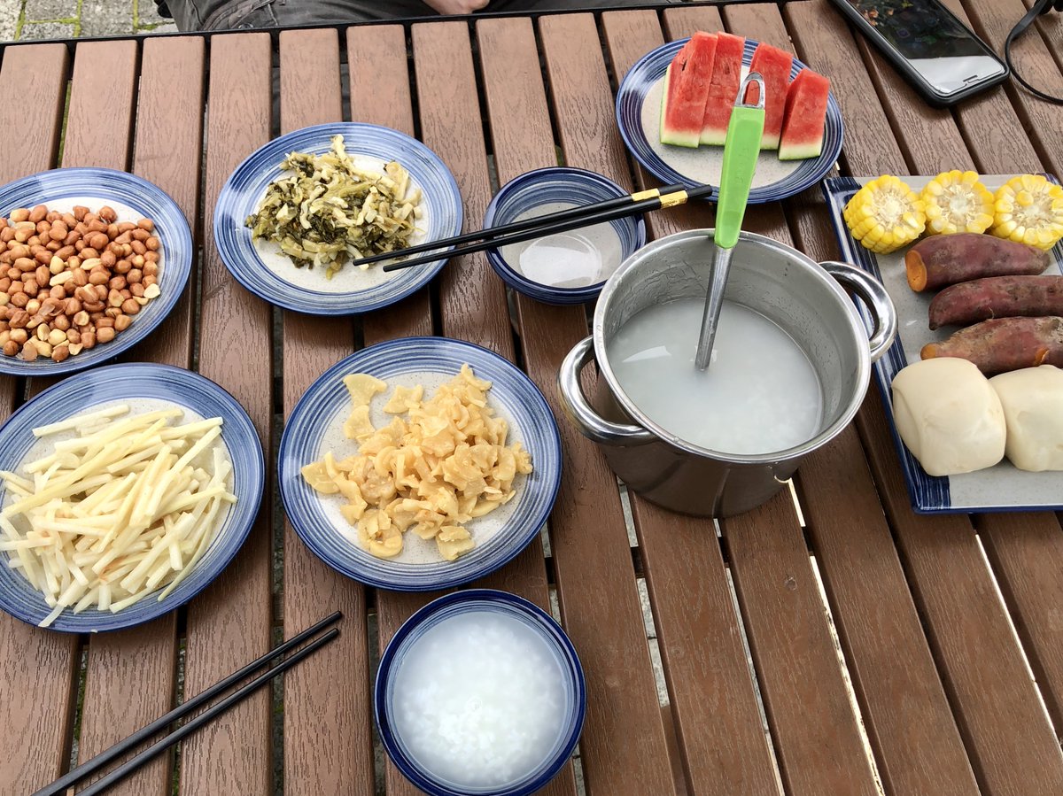 Lovely little breakfast with porridge and local pickles and steamed grains.