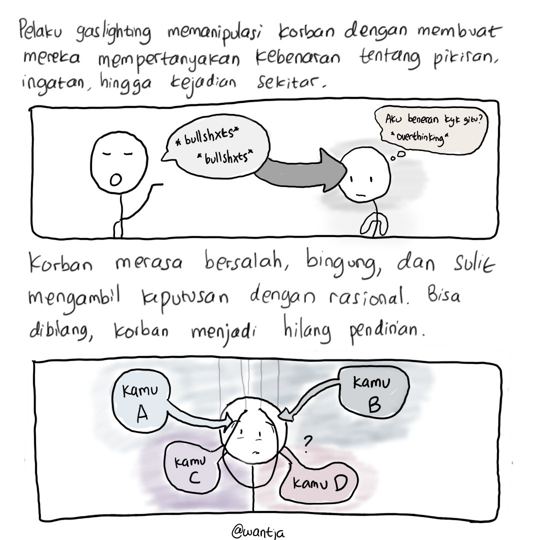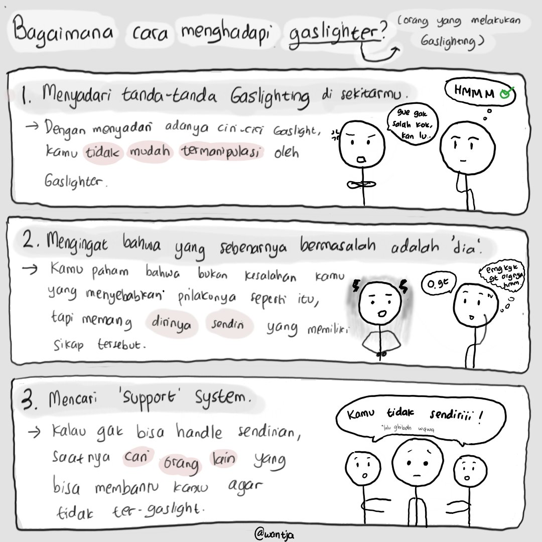 Gue yakin sih, gaslighter tuh bisa jadi orang yang kita ketemuin setiap hari, gabisa kita hindari karena satu dan lain hal (kerjaan, keluarga deket, dll)
