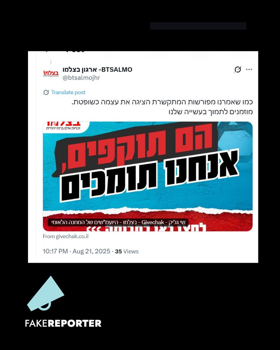ארגון "בצלמו" העלה אתמול קמפיין מופרך שמבוסס כולו על שיחת טלפון הזויה שקיבל המנכ"ל שי גליק. המתקשרת, שגידפה והסיתה, טענה שהיא שופטת. זה הספיק ל"בצלמו" כדי לקבוע שהיא אכן שופטת ולצאת לקמפיין גיוס - למרות הספק וסימני השאלה.