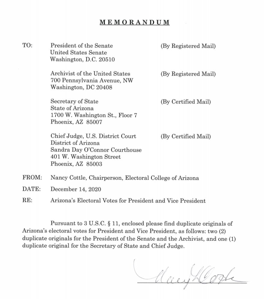 Then, in December, a group of Arizona Trump supporters tried to replace the valid presidential electors from their state — who had been chosen by voters in free and fair elections — with a bogus slate of pro-Trump electors. We obtained a copy of the phony certificate. 3/