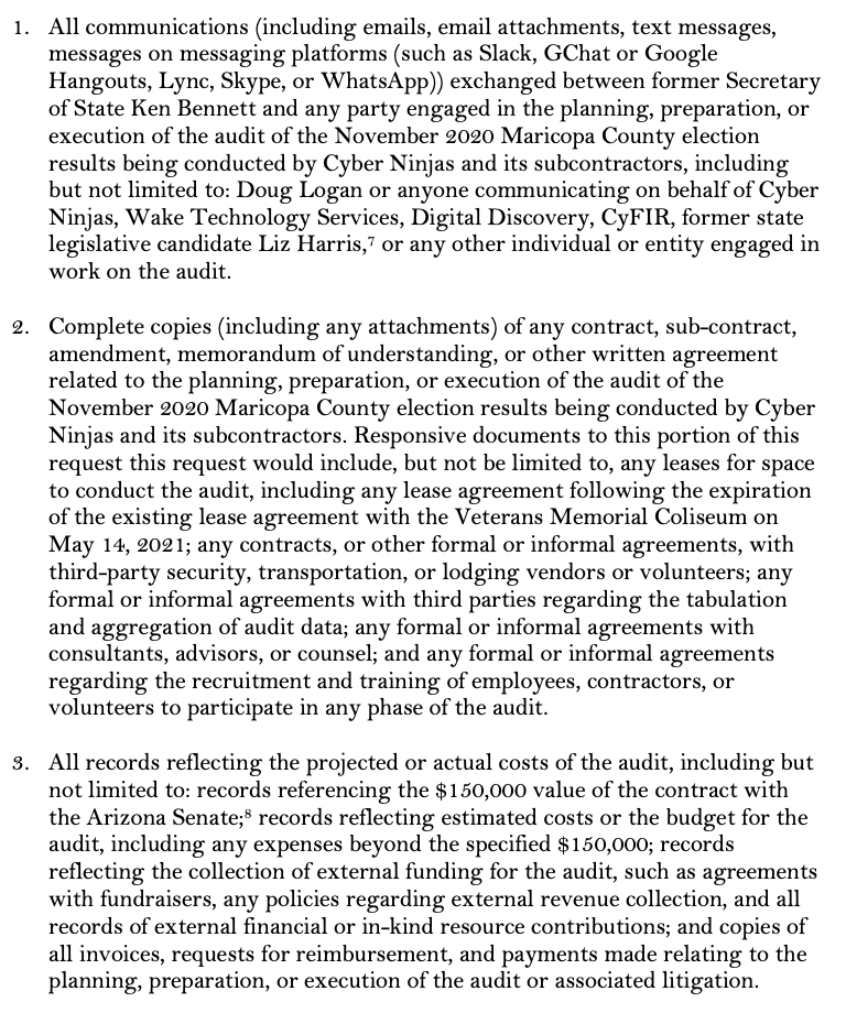 After the Senate announced Cyber Ninjas—a firm with no prior experience with election results whose founder has spread conspiracy theories—would lead the audit, we launched an investigation & filed records requests for documents related to the audit.