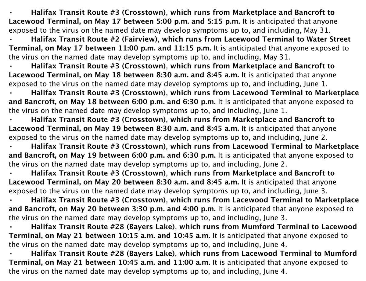 I'll have the potential exposure map and the bus route & flights list updated later tonight.
