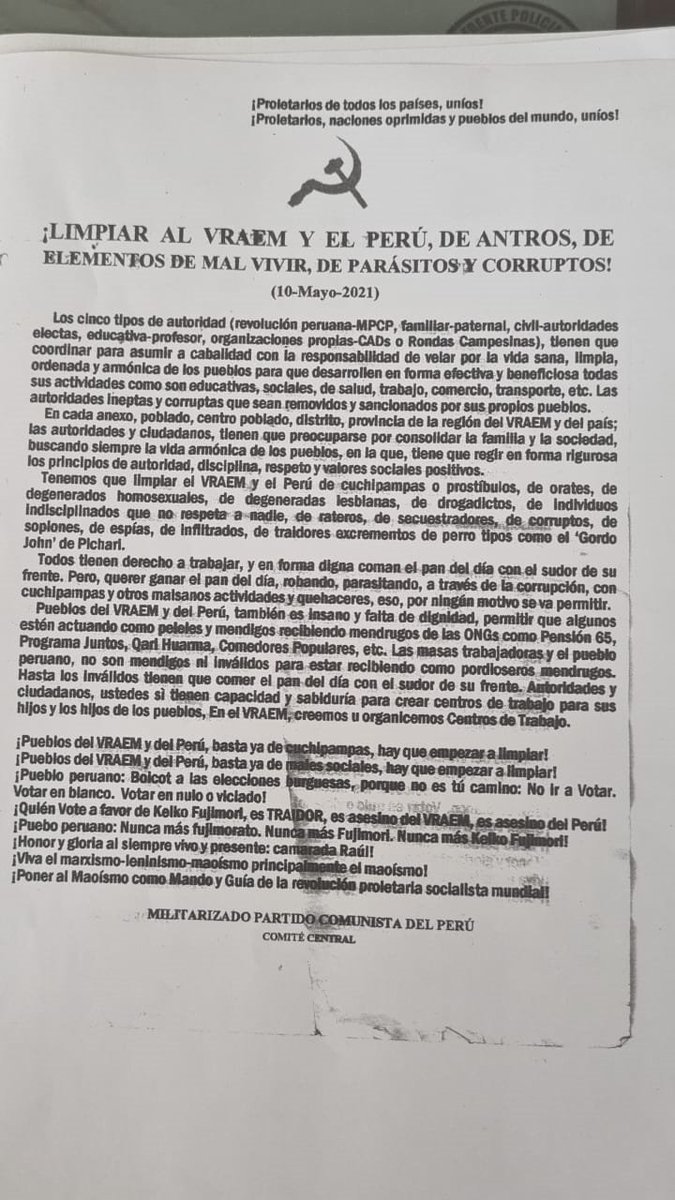 🇵🇪 Perú Libre "condena todo acto terrorista, como el ocurrido en el VRAEM". Afirman que "los crímenes ad portas de las elecciones en esta zona lamentablemente se estan convirtiendo en una tradición con claros objetivos políticos a favor de la derecha".