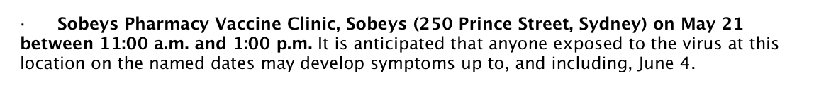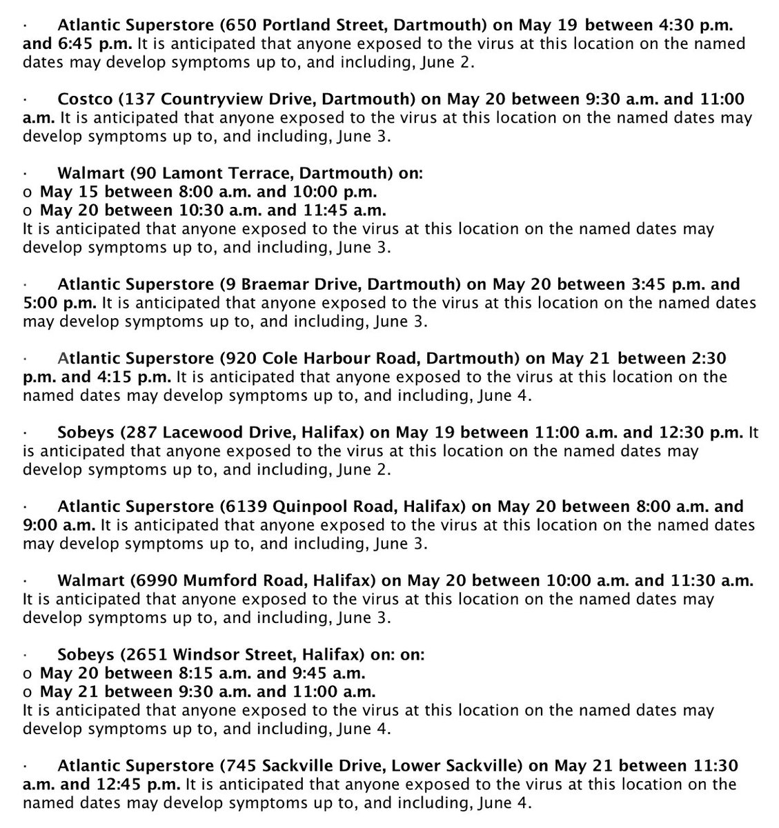 Tonight's potential COVID exposure list is "just" 8 sites in HRM, and no buses or flights: