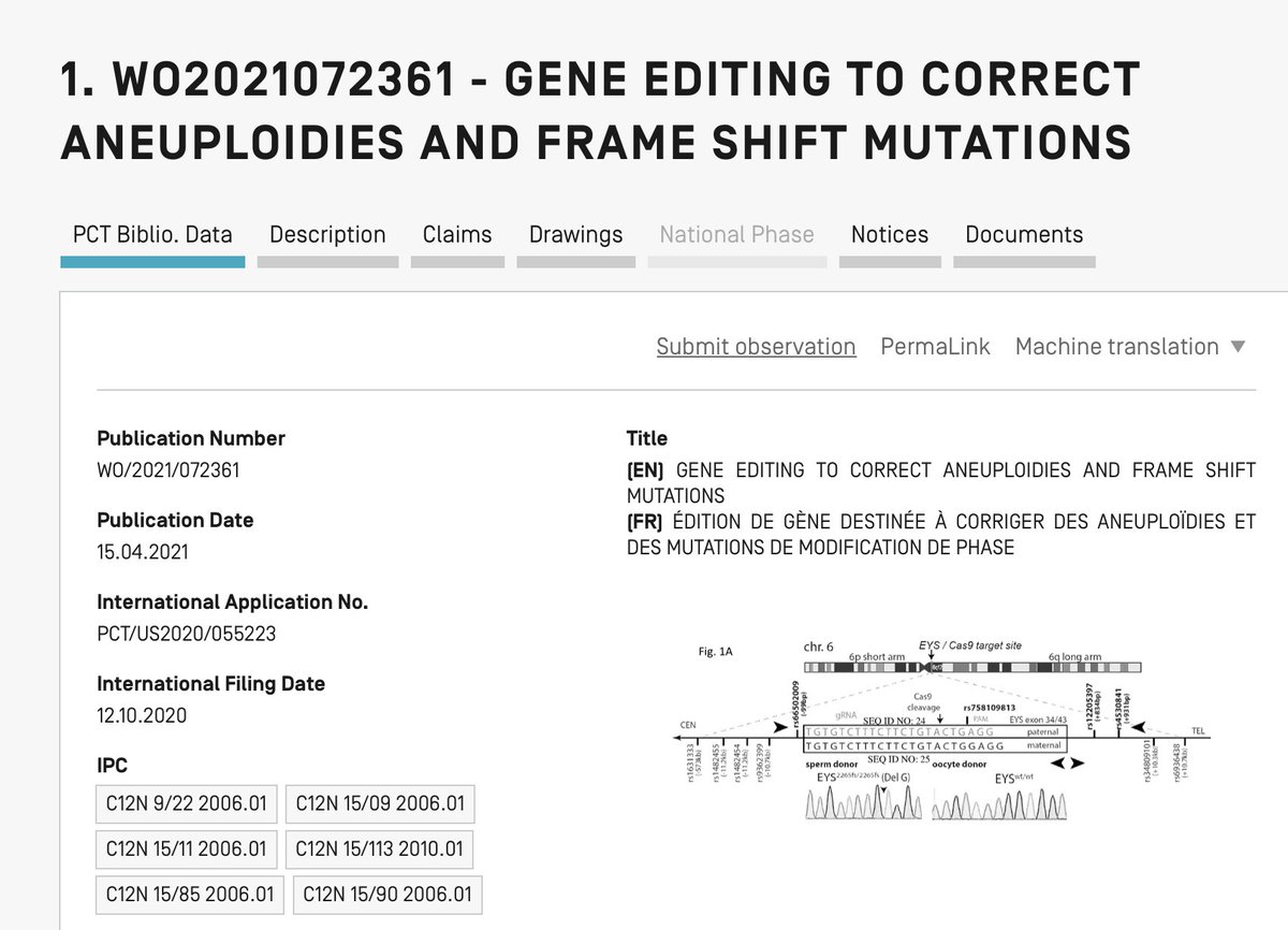 Dieter Egli and @Columbia have submitted a patent application for “Gene Editing to Correct Aneuploidies and Frame Shift Mutations,” specifically in the context of fertility treatments. (4/7) patentscope.wipo.int/search/en/deta…