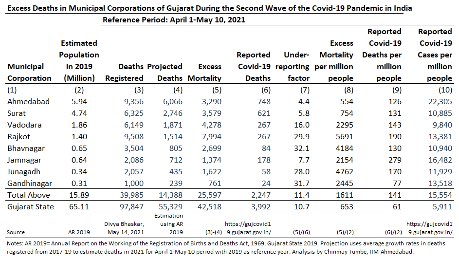 The Gujarat numbers are significant because they cover a reasonably large state which has near-complete death registration statistics. Under-reporting factors will vary wave to wave and place to place.