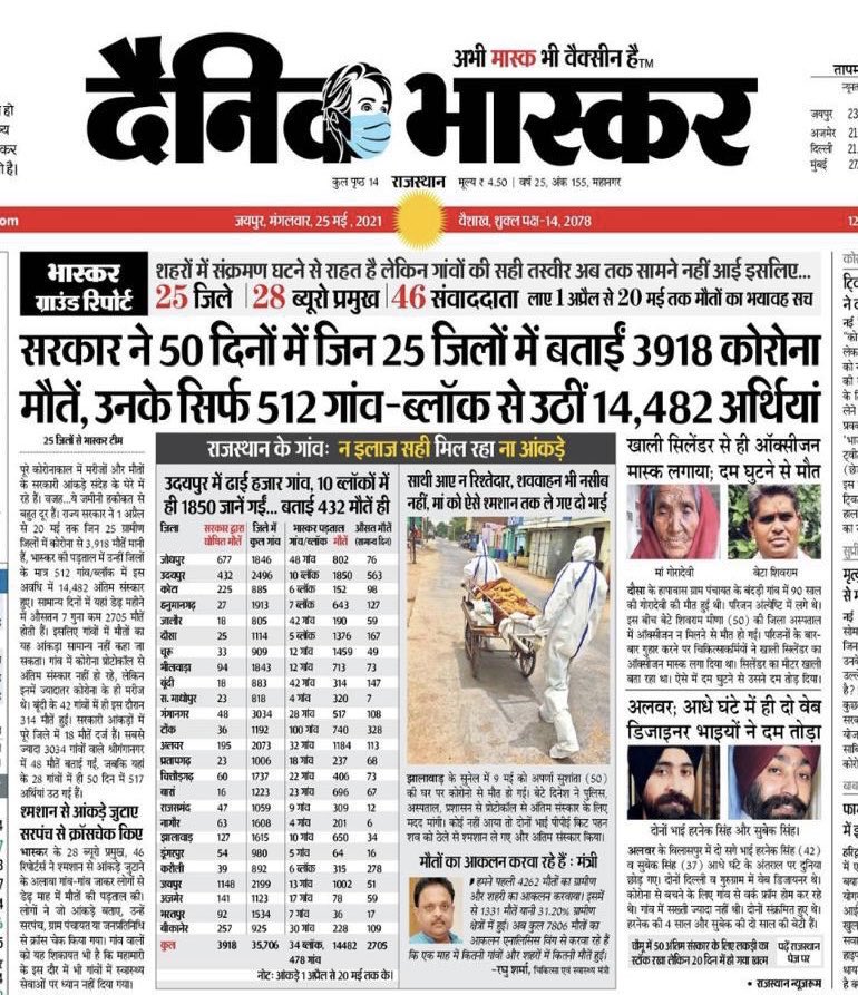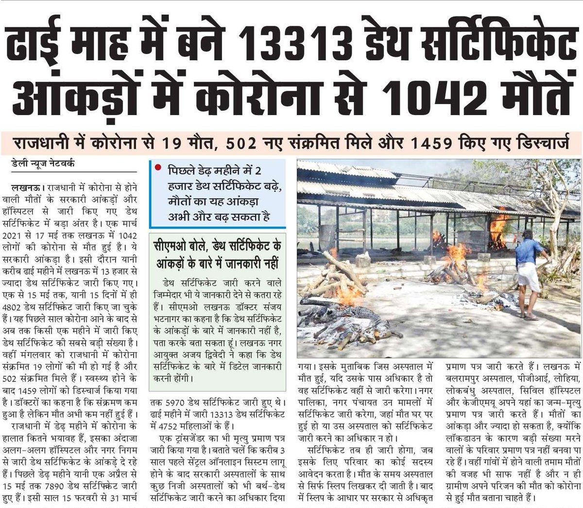 @Divya_Bhaskar@DevendraBhatn10 broke story on May 14, showing a death under-reporting factor of 16 for March1-May10, using 2020 as the reference.