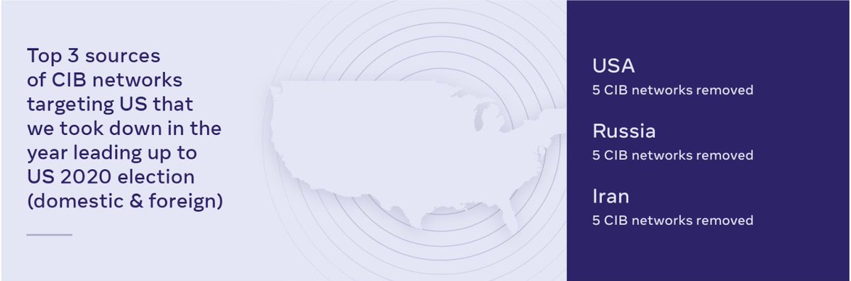 1/ Today we shared our IO Threat Report, an analytical paper that dives into the 150+ CIB takedowns across 50+ countries that FB’s Threat Intel team discovered over the past 3 years. The report IDs adversary TTPs, trends, and provides recs for tackling IO: about.fb.com/wp-content/upl…