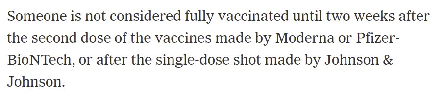 Article by @noahweiland@MitchKSmith tries to explain this by stating that time for full protection w/ mRNA vaccines. But we know 1 dose offers substantial protection vs disease AND infection.