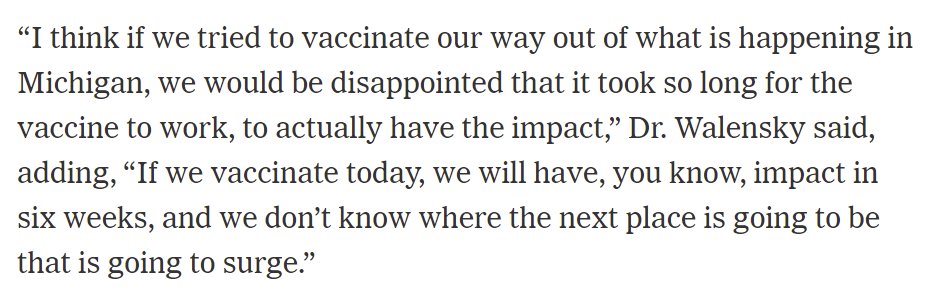 Comments in NYT article from multiple health officials including @CDCDirector@celinegounder are surprisingly at odds w/ data. 1-2 wks not 6. nytimes.com/2021/04/12/us/…