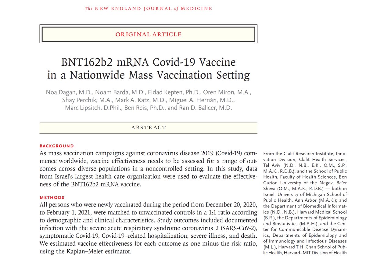 Se compara vacunados vs no vacunados usando datos observacionales o del "mundo real"(fase4), usualmente de programas de inmunizaciรณn. En #COVID19 se ha publicado la efectividad de la vacuna Pfizer/Biontech (Israel)