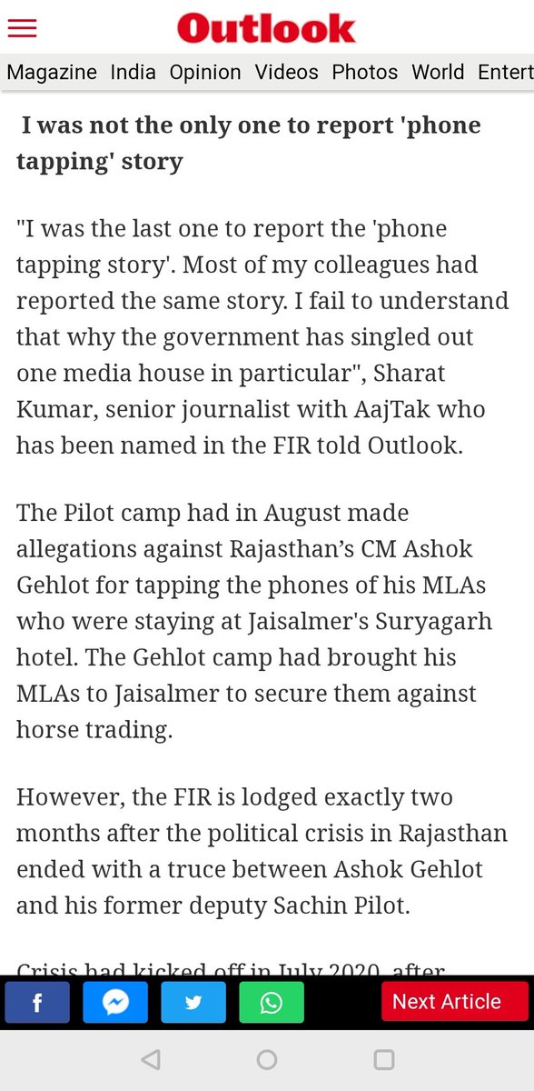 @sharatjpr senior journalist who has been named in the FIR told Outlook 👇