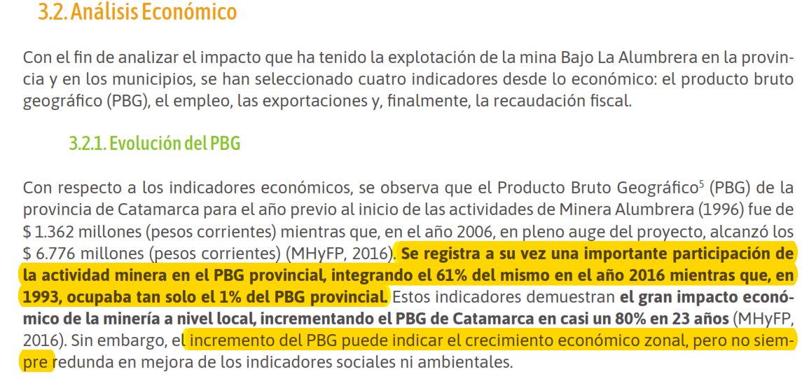 La placa que abre este hilo surge de un audiovisual elaborado por @farnargentina en base a: farn.org.ar/wp-content/upl…. Placa contradictoria ya que el propio informe en pág. 8 indica que el Producto Bruto Geográfico es explicado en un 61% por la minería y que este ha crecido un 80%