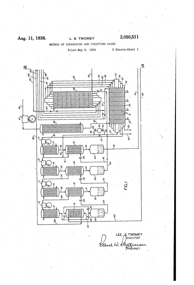 tank; the tanks being separated by insulation. In 1937 Lee Twomey received patents for a process for large scale liquefaction of natural gas