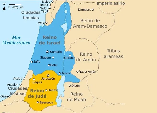 Cuatro siglos después, David unificó el reino judío. Tras la muerte de su hijo Salomón, los hebreos se dividieron en dos reinos, Israel y Judea, que más tarde cayeron en manos de los asirios (721 a.C.) y los caldeos (587 a.C.).