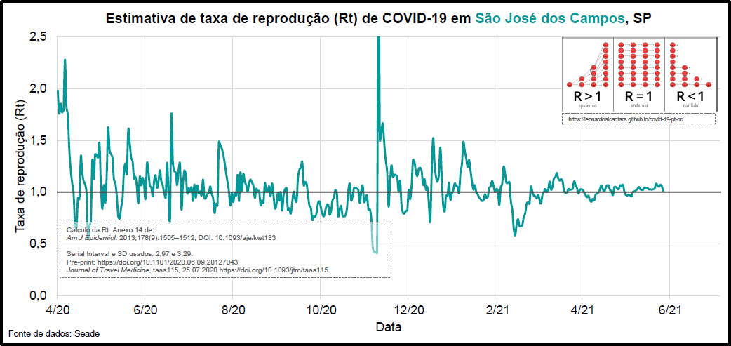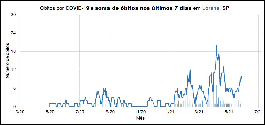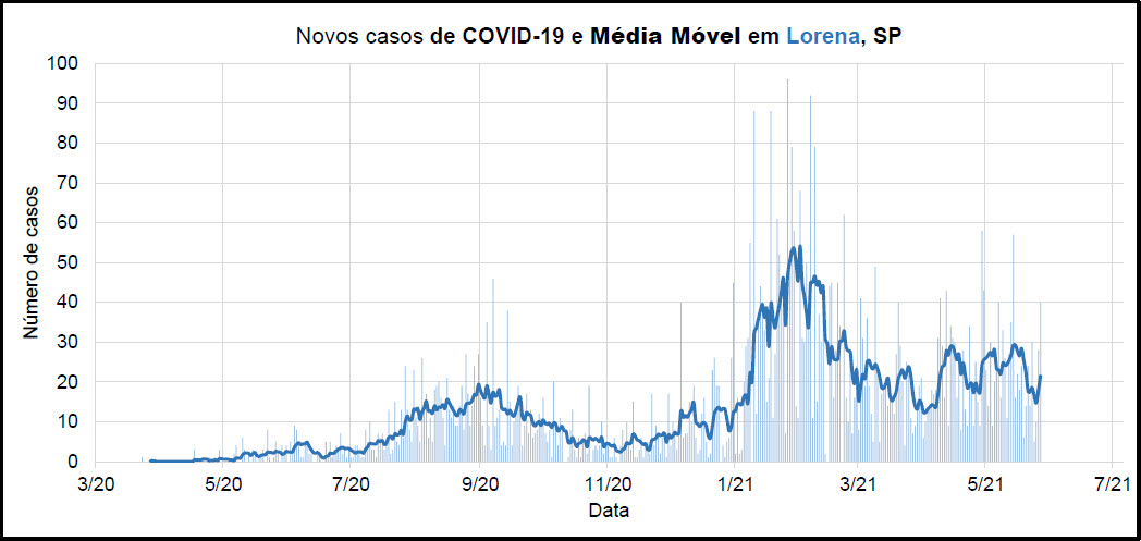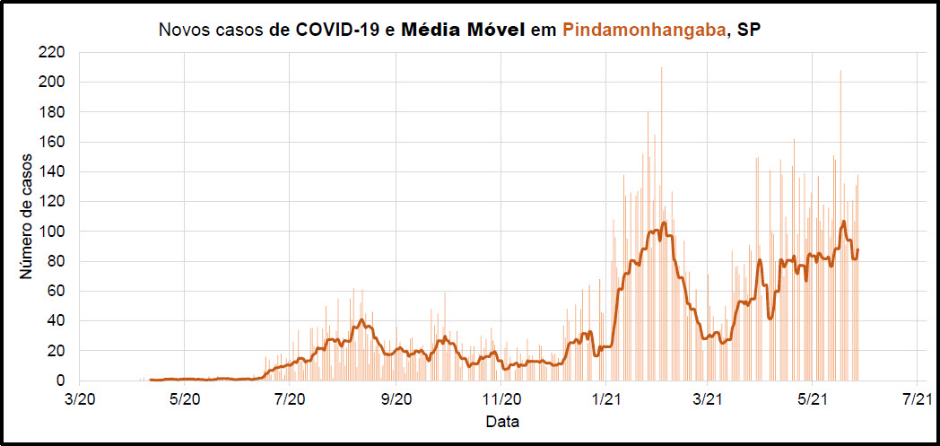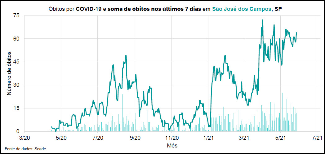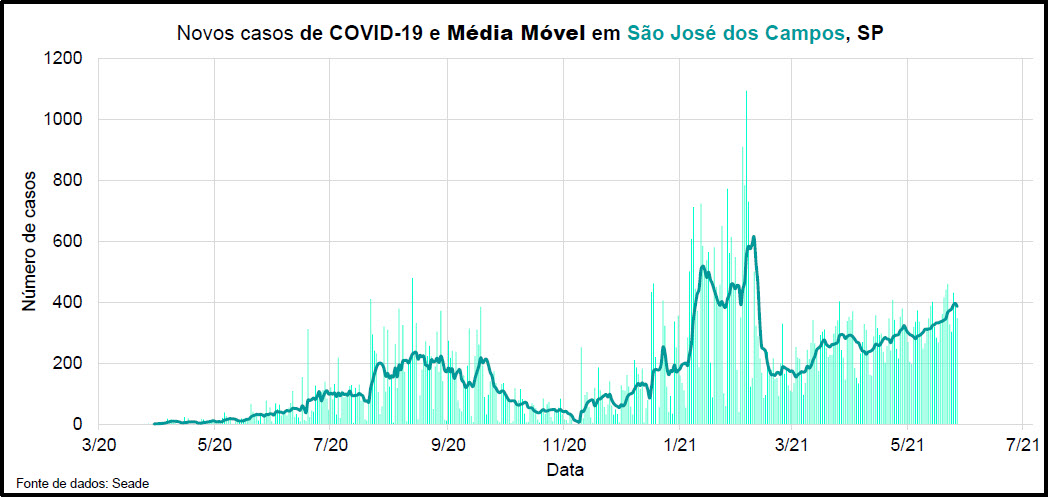 São José dos Campos. Média móvel crescente desde o início de Março 2021.