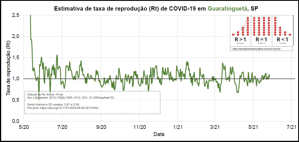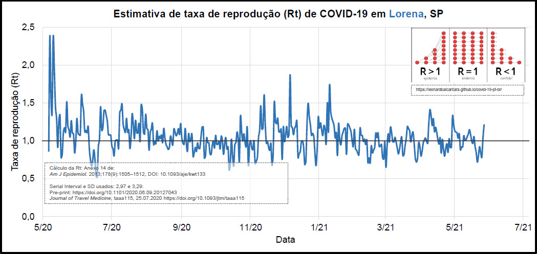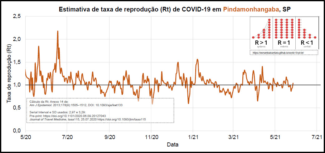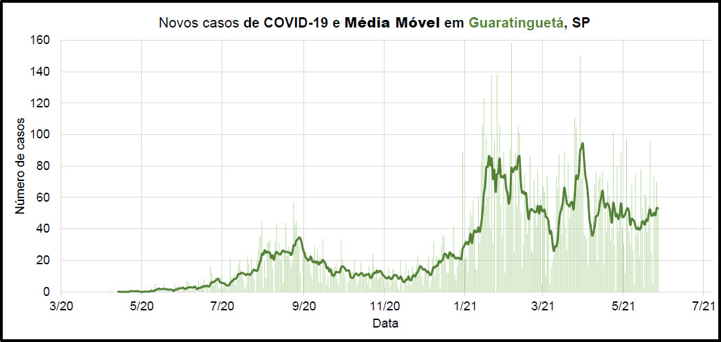 Jacareí. Média móvel de casos crescente desde o início de Maio 2021.