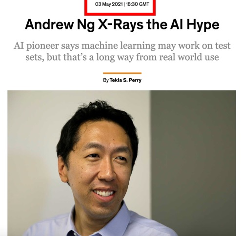 Nous voilà 5 ans plus tard, « l’heure du bilan » comme on dit. Pas de nouvelles de Hinton (qui s’en prend aux chirurgiens now) par contre un autre monsieur, Andrew Ng - avec des propos proches, dit maintenant: «oui bon bah en fait ça marche pas si bien dans la vraie vie !» (7/32)