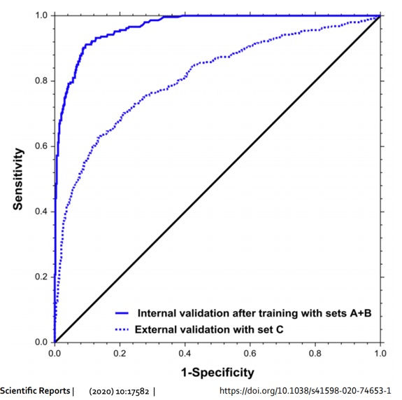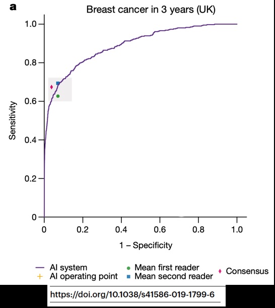 « Humain moyen », lecteurs ayant du relire des centaines d’examen rétrospectivement (= pas du tout les conditions cliniques), modèle représenté sur son set de validation interne (sa meilleure performance), etc… Bref.