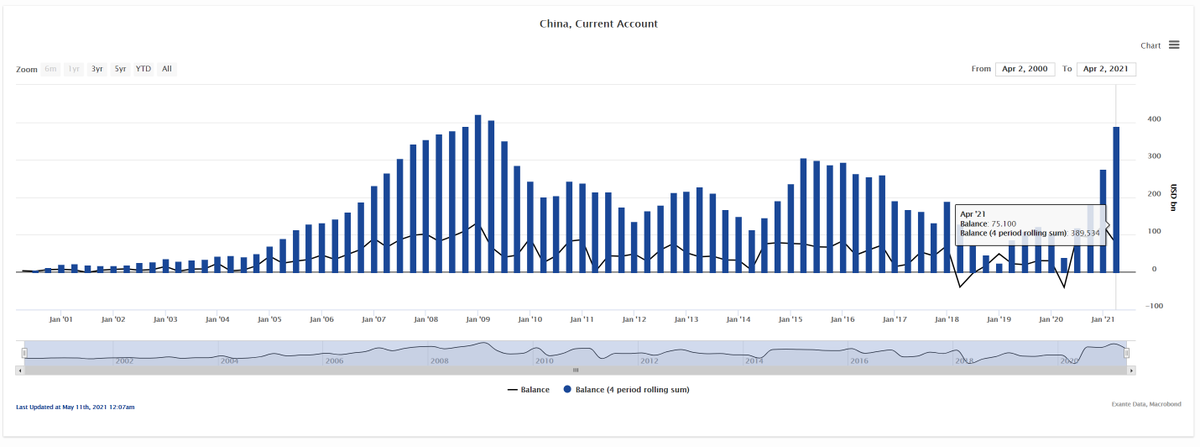 One: China is on course for its largest current account surplus in more than a decade. For 2020 my current estimate stands at about $332bn. & its held down by Q120.