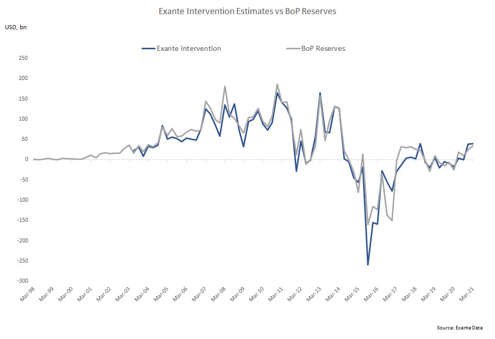 Meanwhile, the official BoP data show reserve accumulation since Q4 2020 averaging about $30bn per quarter which is the highest since 2017/18.