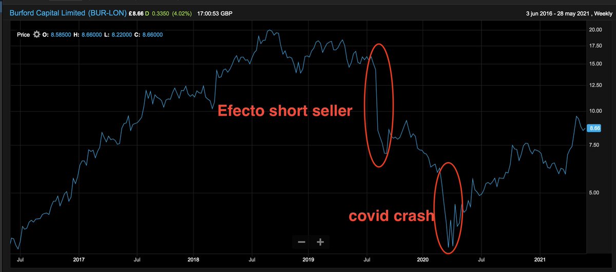 Un ejemplo del efecto que puede tener un informe de short seller, lo tenemos con Burford Capital $BUR.L