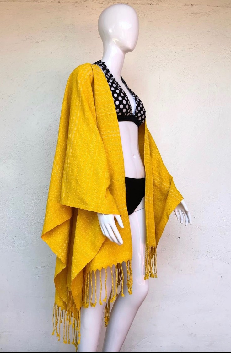 Elabora textiles en telar de pedal con distintos materiales como algodón, lana y articela y confeccionan prendas como salidas de baño y blusas ♥️