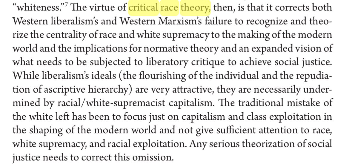 I walk away from this article knowing one thing: Andrew Sullivan is less of a liberal than CRT heavyweight Charles Mills. And he hasn’t got a fucking clue what CRT is. (Okay, so two things then.)