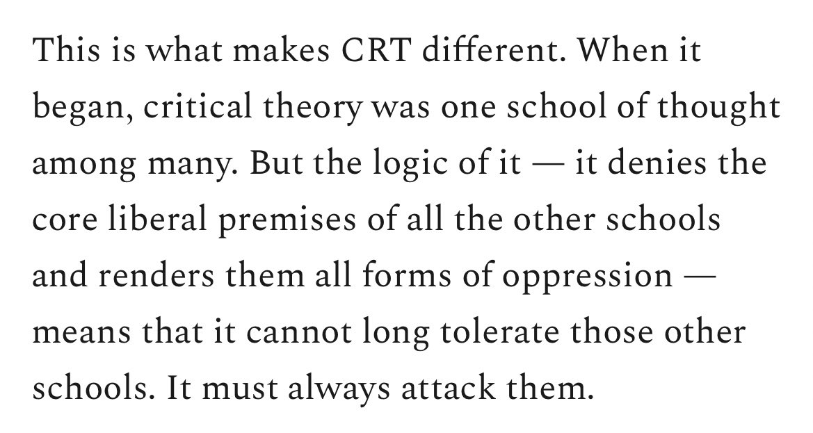 @CathyYoung63's recent piece for @ArcDigi claims that, compared to James Lindsay's PragerU video on Critical Race Theory, my "defense" of CRT "isn't much more convincing." The problem? I never wrote a defense of CRT. cathy.arcdigital.media/p/the-fight-ov…