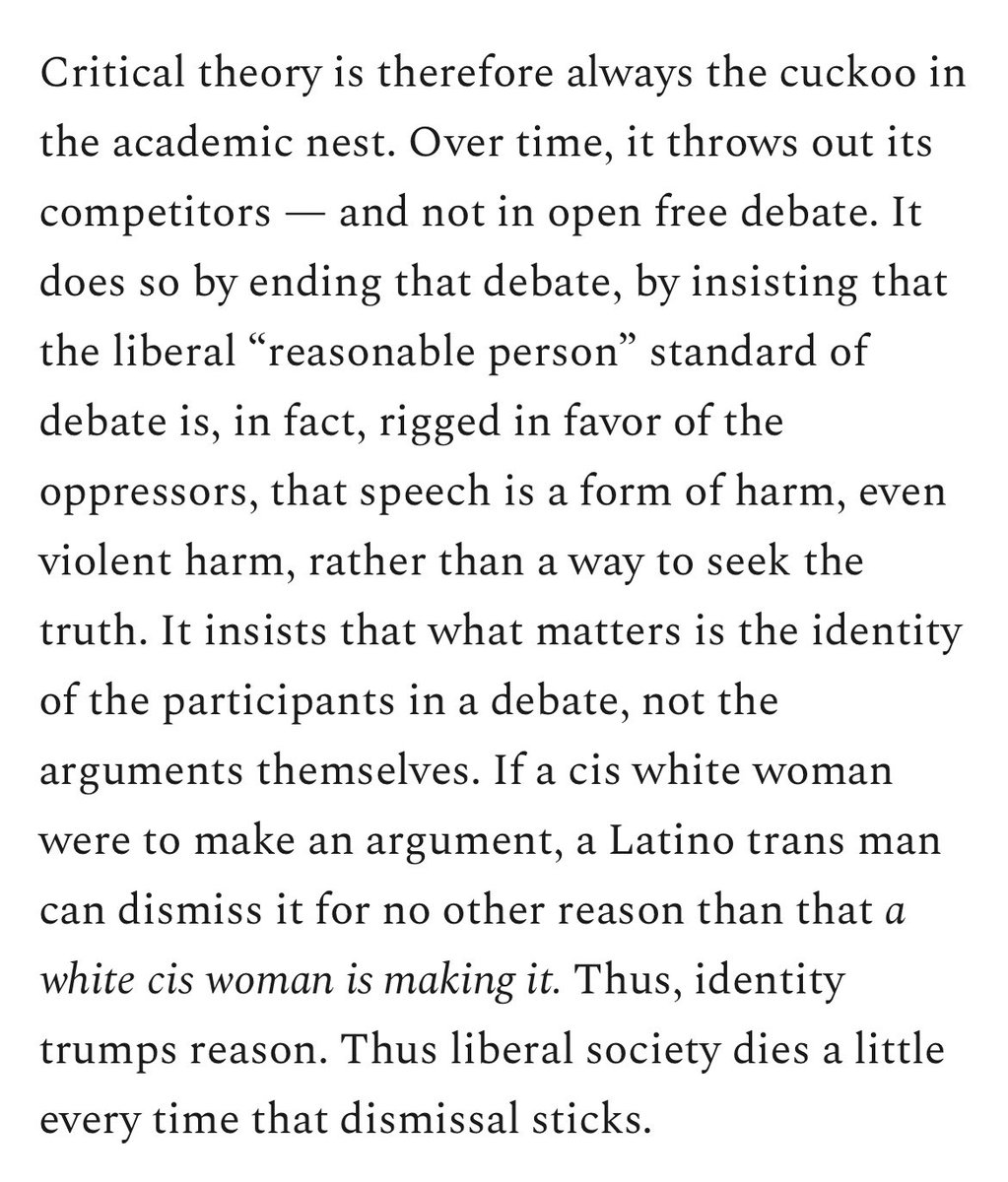 What I did write was a blog post (conceptualdisinformation.substack.com/p/james-lindsa…) explaining how the boogeyman James is selling is a complete strawperson representation of CRT, according to which critical race theorists think all human interactions are racist. Rick Roderick puts it best: