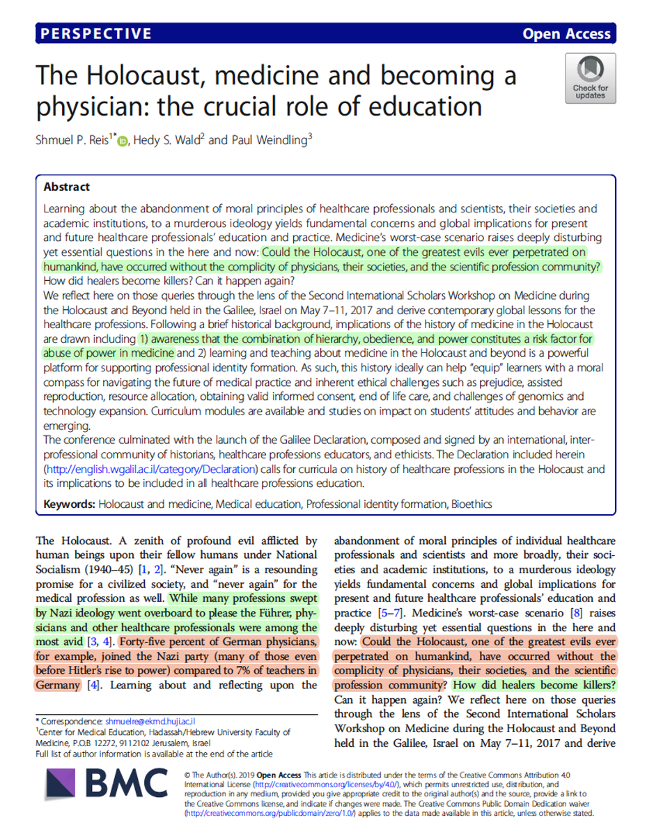 La eliminación judía de la profesión médica en Alemania; la esterilización/eutanasia forzadas de discapacitados y enfermos mentales, y experimentos monstruosos en humanos, fueron TODOS propuestos, planificados, organizados y llevados a cabo por médicos e institutos científicos.