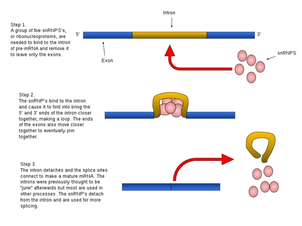 For this purpose, consensus splice donor & acceptor sites have evolved to drive this process that occurs co-transcriptionally in our cell nuclei. The RNA consensus sequences are recognized by RNA/protein complexes (spliceosome). 8/