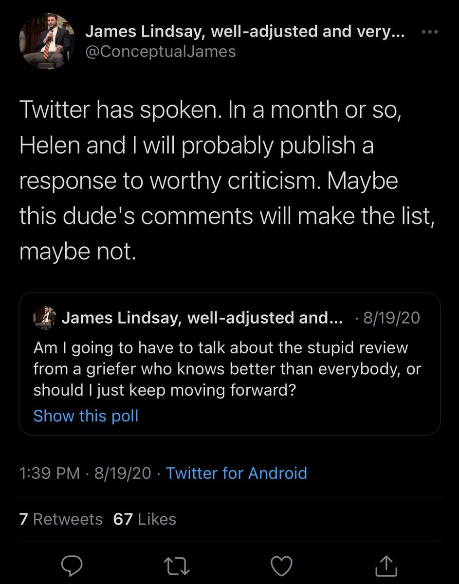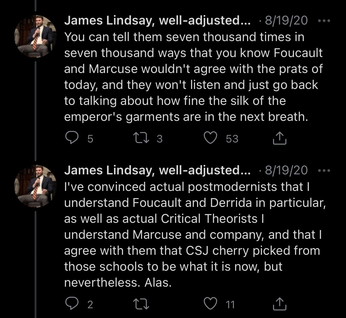 Everyone should know @ConceptualJames & @HPluckrose are responsible for feeding the entire reactionary anti-woke ecosystem dogshit interpretations of scholarship. They’re seen as top IDW experts.