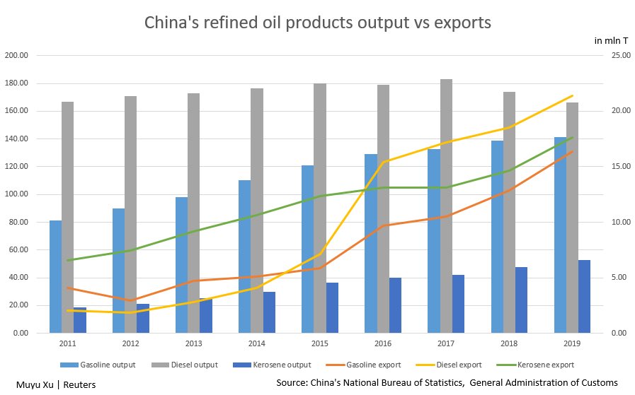 D’ailleurs la chine avait en 2019 des importations nettes pratiquement nulles et un début de déclin de sa consommation de diesel