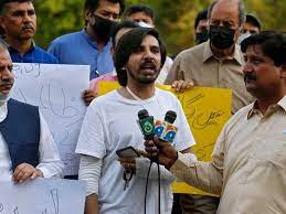 Breaks into the house of a DOG named @AsadAToor and slaps him on the elbow and runs away.๐