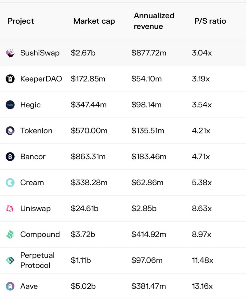 $SUSHI is the most undervalued asset in crypto and it’s not even close. Generates top 4 total revenue, lowest price per share ratio, one of the only protocols that directly pays a dividend to stakeholders... but valued 67th in market cap 🤔