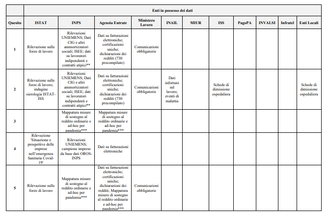 Per trovare risposte adeguate e arrivare a chi ha davvero bisogno d'aiuto bisognare mettere insieme le informazioni di cui le amministrazioni pubbliche dispongono già. Qui l'elenco