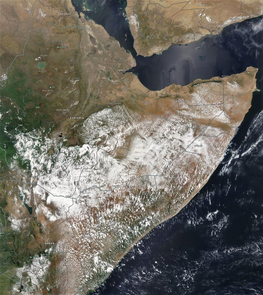 A view of Ethiopia and the Horn of Africa from this morning from @NASA's Modis satellite.