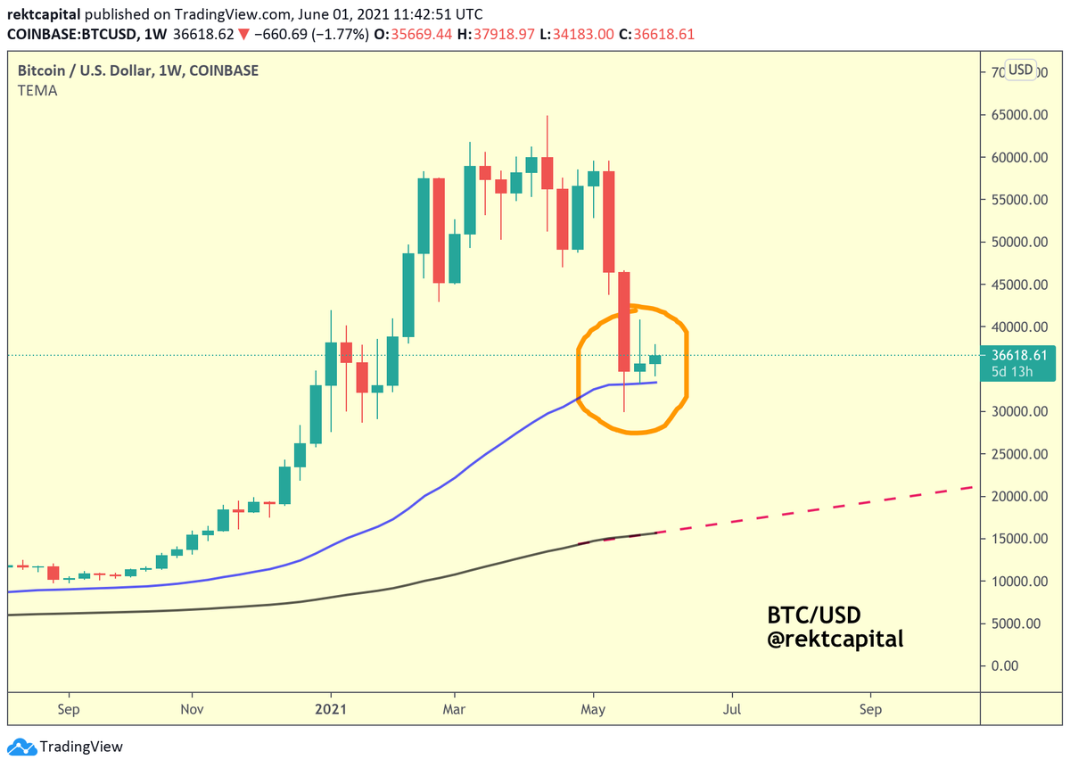 Though $BTC doesn't actually touch the 50 EMA on the crash, this EMA proved useful in preserving the bullish momentum after the crash