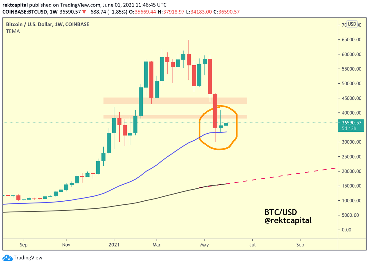 If the rebound from the 50 EMA is strong enough to rally above the $38K level and then the $45K level...
