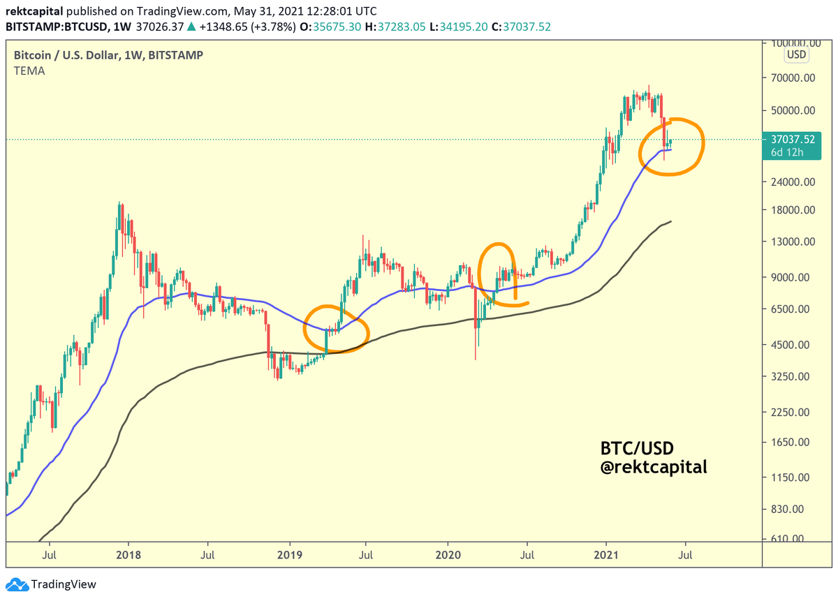 Historically, the 50 EMA figures as a valuable support across #BTC Bull Markets