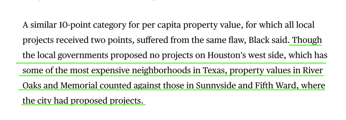 This meant that Houston's richest 'hoods (with no project applications) hurt the chances of poor 'hoods (with several apps) to receive funding. ⬇️