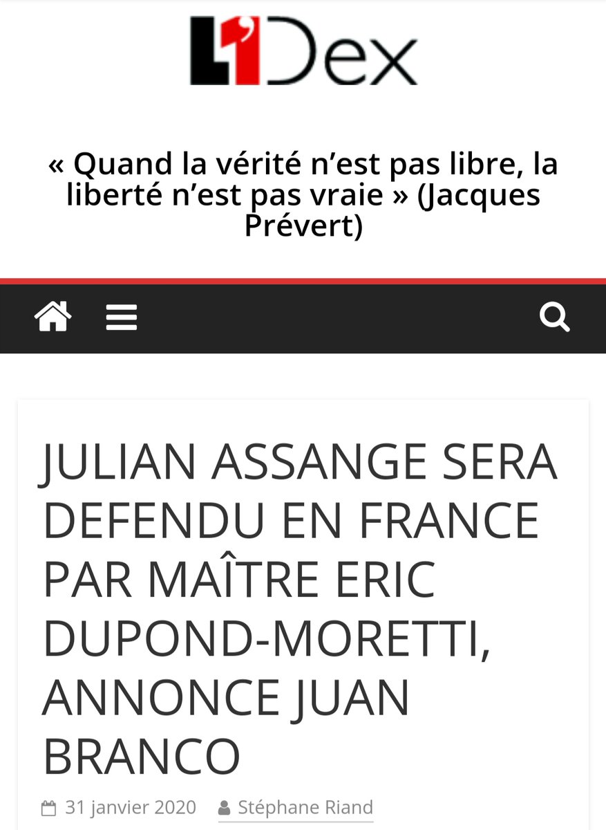 En 2020, Branco conseille à l'équipe d'Assange d'embaucher Dupont Moretti pour le défendre... Dupont Moretti, "aquitator" pour les médias, "aggravator" pour la majorité de ses clients ! Sans même parler de son implication dans le procès Outreau..