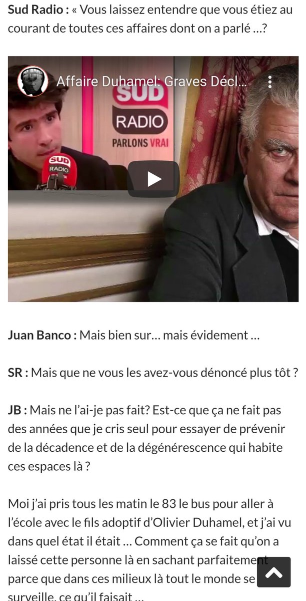 Récemment sur Sud Radio, Branco admettait qu'il était au courant de l'affaire Olivier Duhamel avant qu'elle ne sorte dans les médias. Pourtant, il ne me semble pas l'avoir entendu dénoncer ce dernier publiquement...