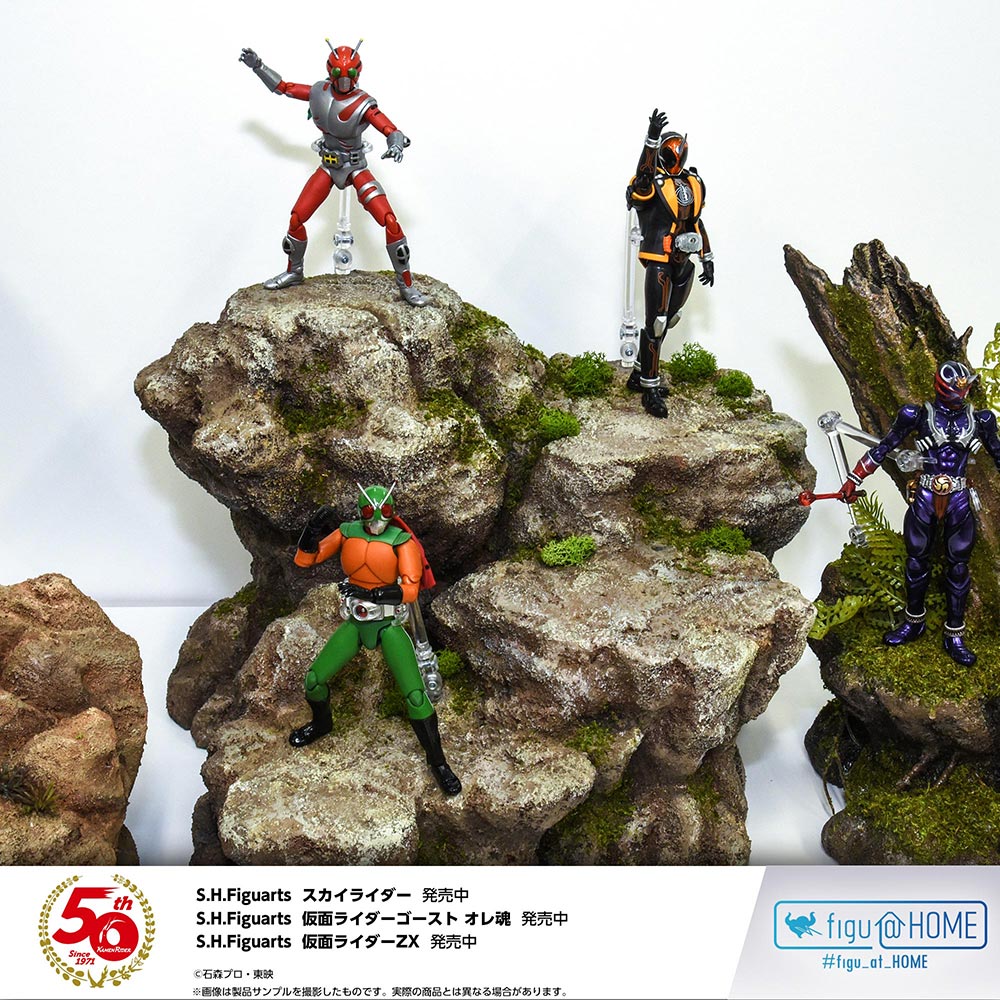 *Looking at a gallery of Kamen Rider figures places on unique dioramas and kind of themed.