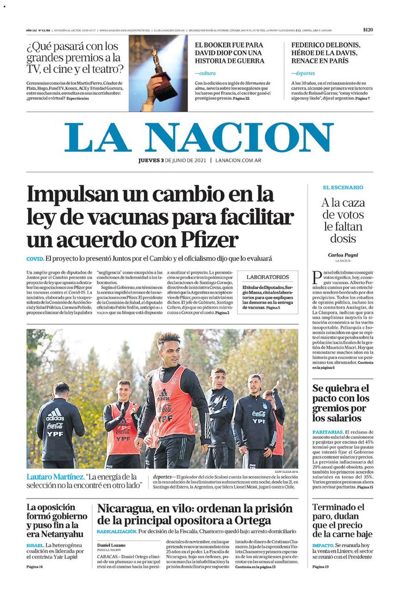 Martes 1 de junio. Pandemia. Ayer el Gobierno Nacional trajo más de 2 millones de vacunas de AstraZeneca Oxford con el componente activo fabricado en el país. No fue foto principal de @clarincom 👇. Lo que demuestra que es un error buscar consensos con los defensores de la muerte