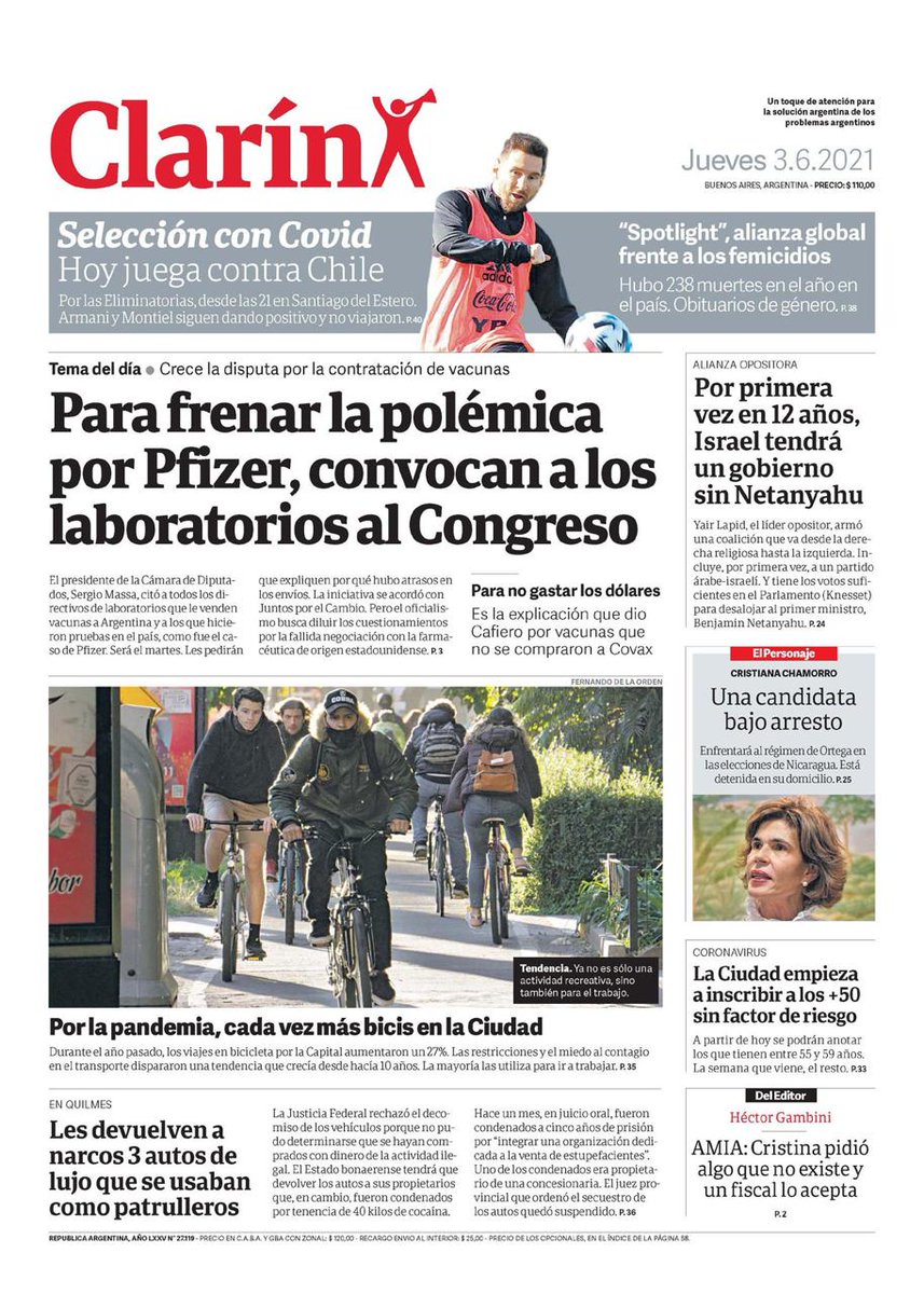 El lobby por Pfizer es intenso hasta la obesesión. Es mentira que Argentina no quiso contar con Pfizer. Se le concedió el Hospital Militar y una Ley del Congreso pero querían inmunidad legal con radicación litigante en EE UU. Alconada Morales Pagni insiste en bicicleta diaria.