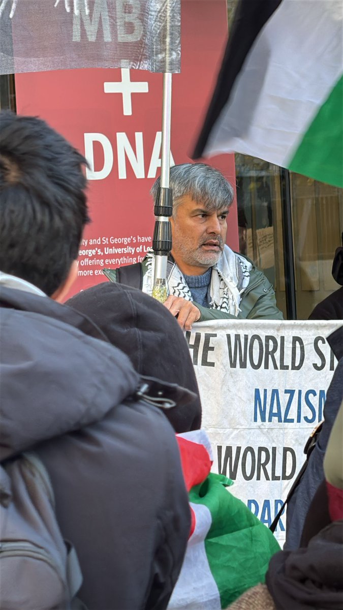 It is no surprise to find the disgraced former Liberal Democrat MP and incorrigible racist David Ward at this hatred rally, behind a "Palestine Solidarity Campaign" banner. 3/5