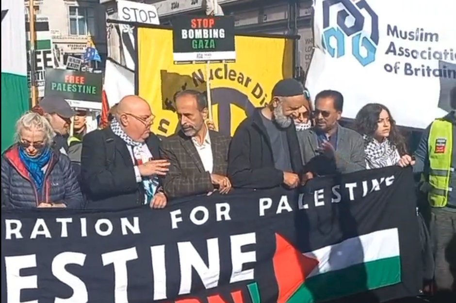 ...first big "Palestine Solidarity Campaign" protest in London, just a week after the Hamas atrocities. His "Palestinian Forum in Britain" outfit is one of the six main national hate march organisers.