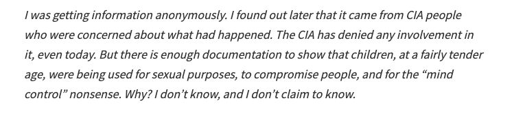 Connections between the #CIA & the #Finders is one of the most explosive & significant aspects of the scandal because it would constitute an outlandish & perhaps criminal group purported to be abusing and trafficking children sanctioned by the most powerful government on earth.